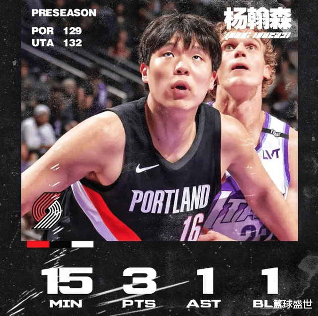 季前赛第一场面对勇士,初登NBA赛场,现实就像一盆冷水直接泼脸,勇士那的快节奏球风还是有些难以接受,虽然还是得到4分4板6犯,但个人节奏明显有些滞后;第二场面对实力稍稍低一档的国王,适应节奏之后的杨瀚森在第三节突然爆发,全场交出16分4板1助攻3盖帽,相当亮眼的表现;第三场再战勇士,杨瀚森明显冷静了很多,9分6篮板1助攻的数据虽然平淡,但防守端位置、进攻掩护处理都肉眼可见地进步。